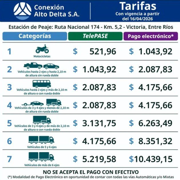 El nuevo sistema implica una transición obligatoria hacia el pago digital. Para quienes utilicen con frecuencia el corredor Rosario–Victoria, contar con TelePASE será clave para reducir costos, ya que la tarifa electrónica duplica el valor en todas las categorías.